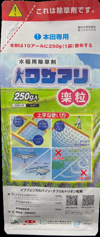 ・移植後15日~ノビエ4葉期まで使用できる中・後期除草剤。 ・湛水散布が可能。
